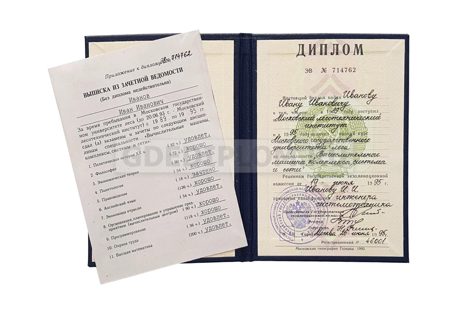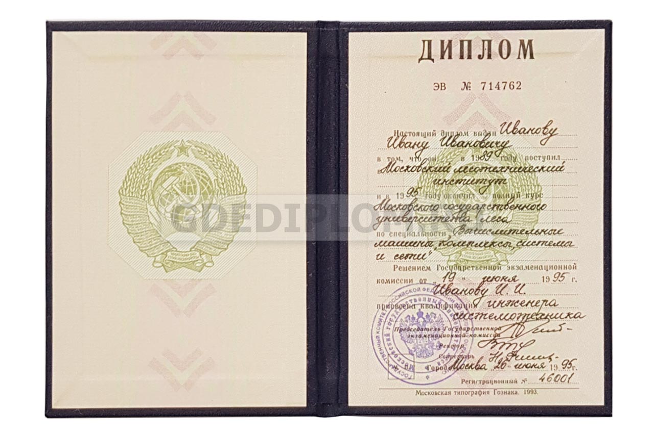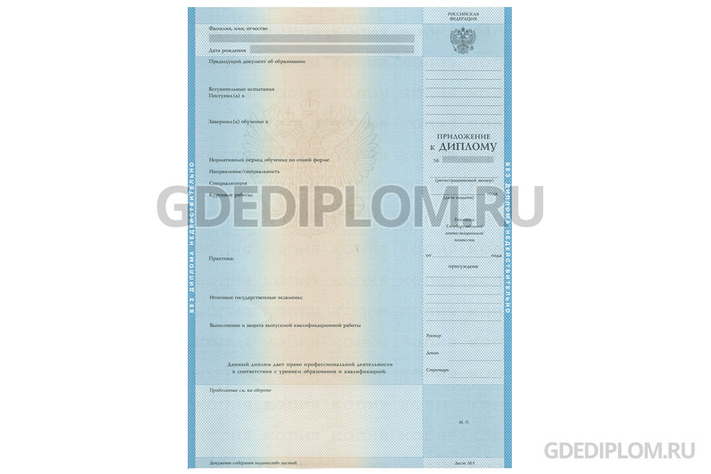 У нас на сайте вы можете заказать диплом о неоконченном высшем образовании любого ВУЗа Москвы, Петербурга и других городов России с 1996 года по настоящее время. При изготовлении мы используем только настоящие бланки Гознак!